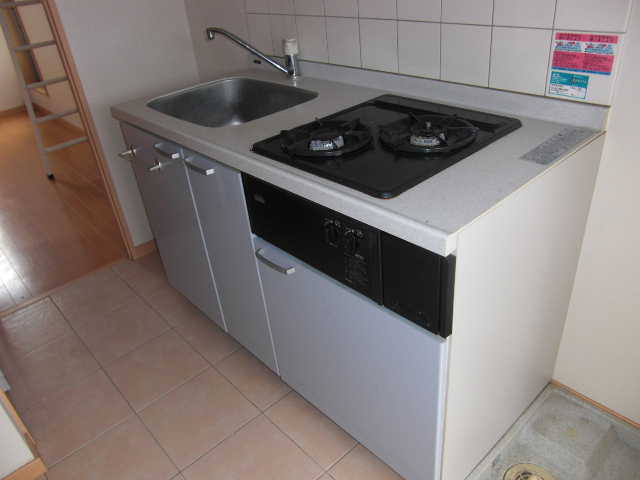 2口ガスコンロでグリル付きなので