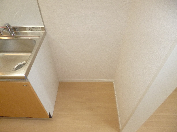 システムキッチンの横には冷蔵庫を置くスペースもきちんとあります。
