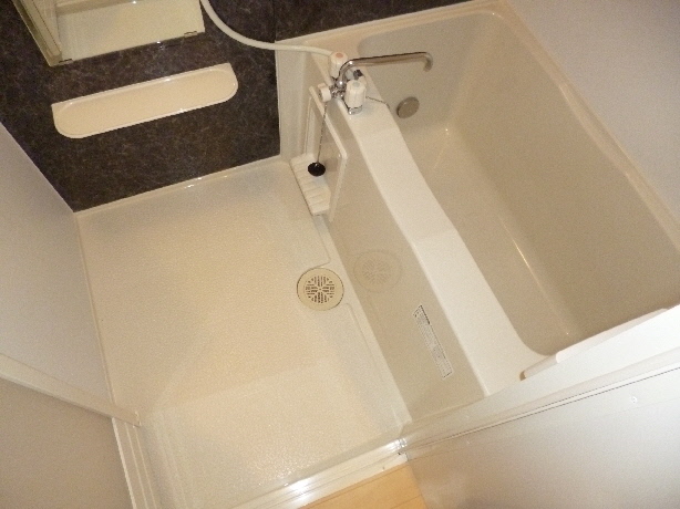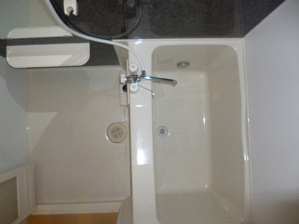 浴室には浴室乾燥機能が付いています。大きな鏡やシャンプーなどを置けるスペースもしっかりと作られています。