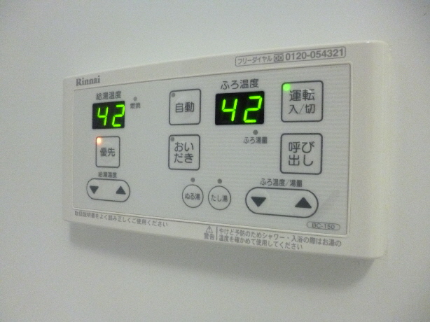 給湯機のパネルと浴室乾燥の操作パネルです。