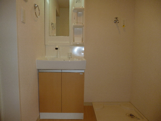 洗面脱衣所にはシャンプードレッサーと洗濯機置き場があります。