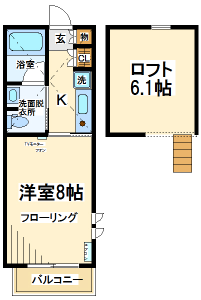 【間取り】 1K+ロフト付き 24.0㎡