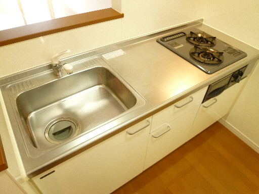 人気の対面式キッチン(システムキッチン・ガス2口+グリル付き)です♪