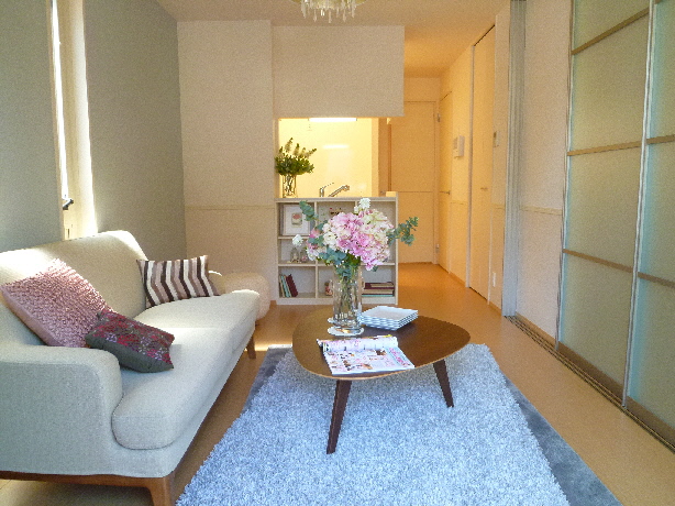 リビングには、写真のようにソファーやローテーブルも余裕で配置して頂けます☆