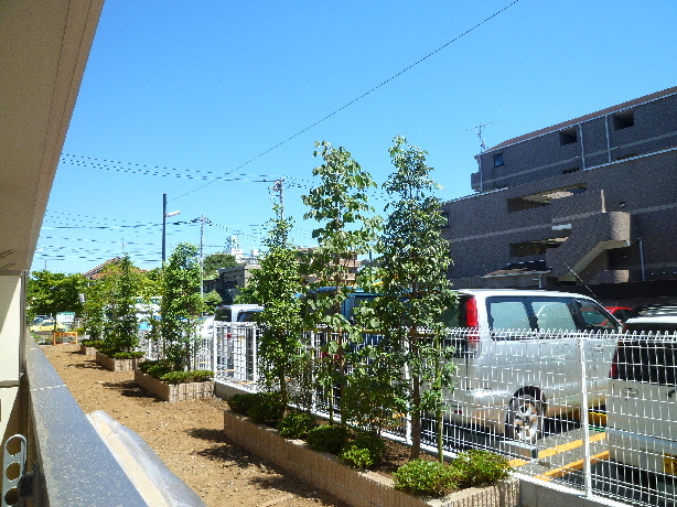 リビング・洋室の両方から出入り可能な広いバルコニー!!目の前は駐車場になっており、植栽等もございますので