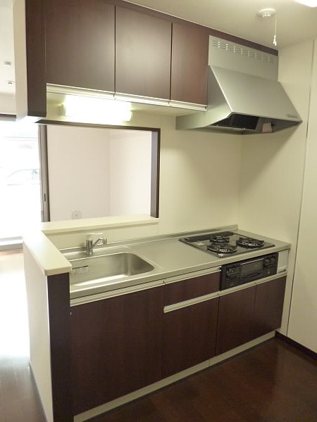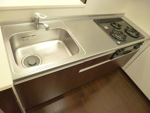 3口のシステムキッチン、しかもグリル付きですので、