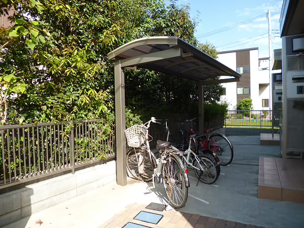 玄関前には、屋根つきの自転車置き場がございます(^^)