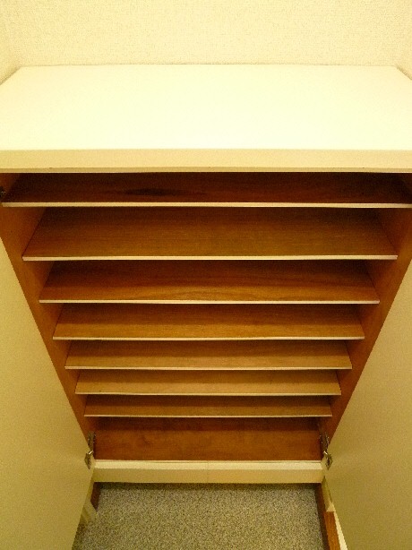 玄関を入ると、多くの段に分かれた下駄箱があります
