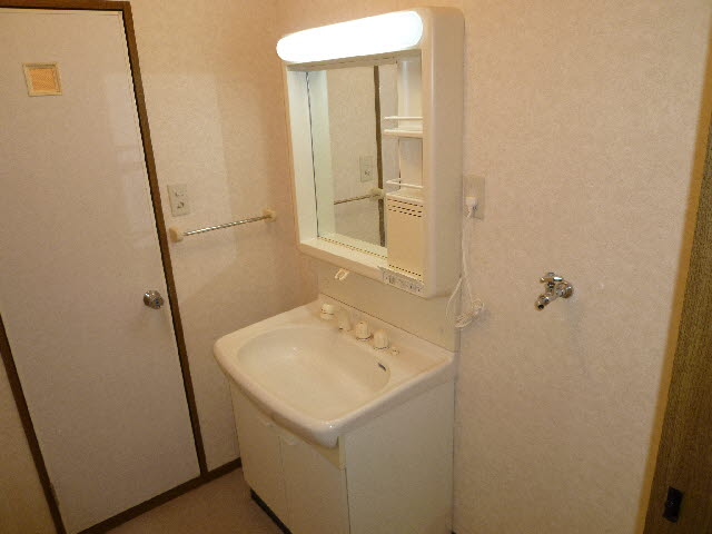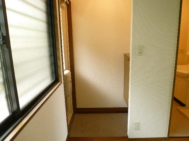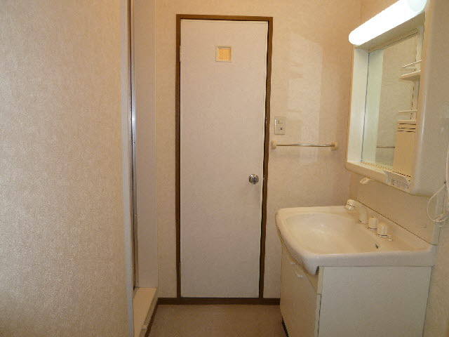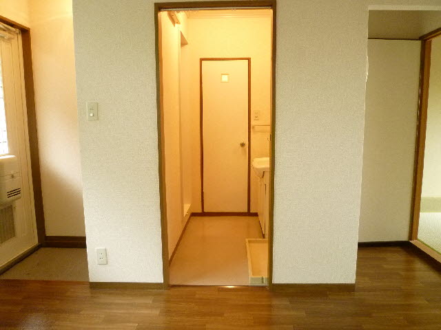 DKから 扉を開けると洗濯機置場と独立洗面台がある脱衣所があります。脱衣所を過ぎると 奥には