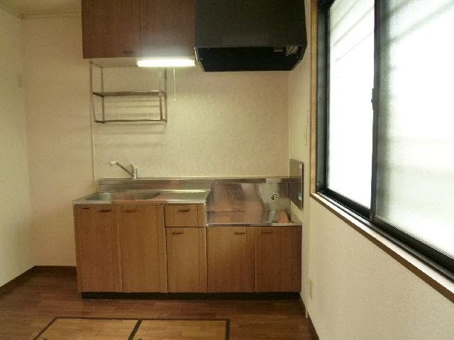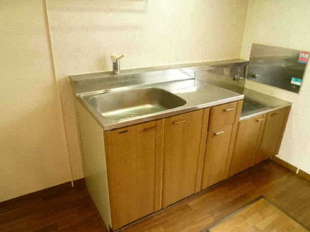 キッチンは、2口ガスコンロ設置して シンク迄の間には、料理しやすいようになっております