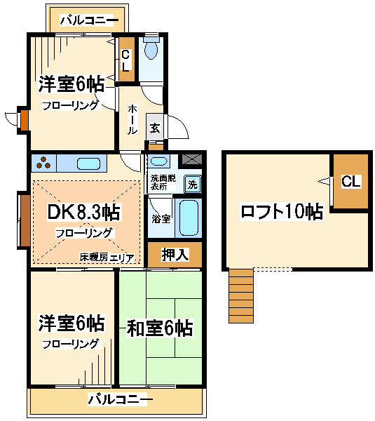 3DK+ロフト 55.88㎡