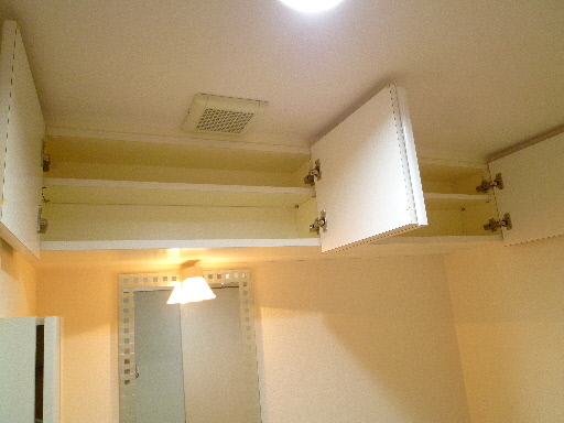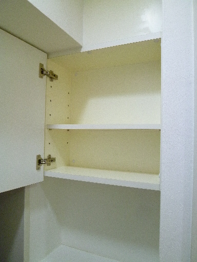 脱衣スペース上部には収納があり、タオルやバス用品の