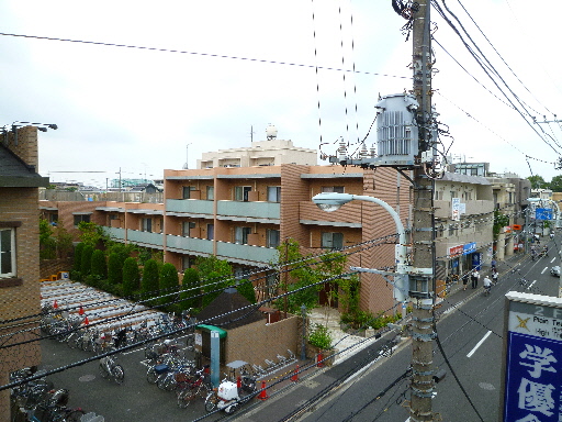 きたらもうすぐです 青い看板がレントハウス仙川店です。