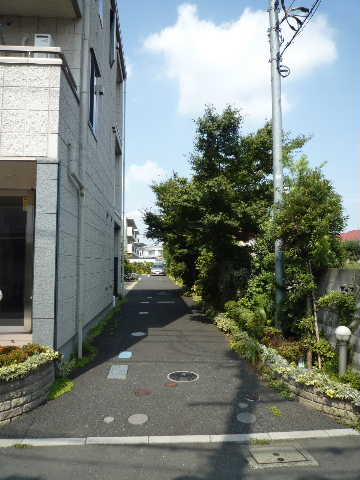 左にクリーニング店、この先の右側きたらもうすぐです 青い看板がレントハウス仙川店です。