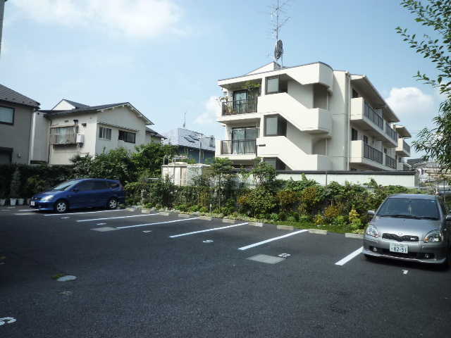 建物周辺です。駐輪場や駐車場、それぞれ広さがしっかり取られてます。