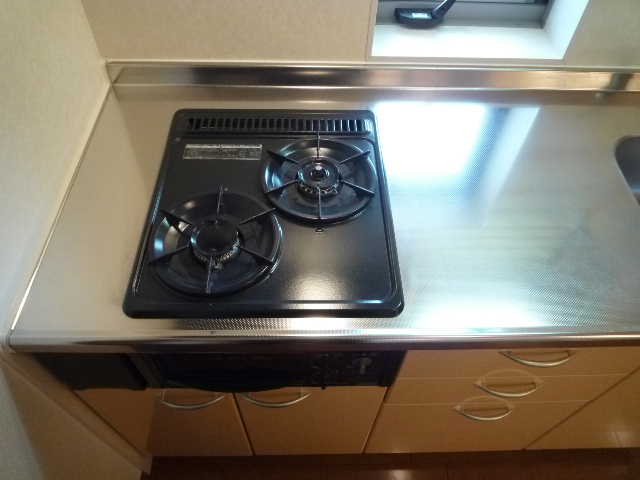 【設 備】 2口ガスコンログリル付きシステムキッチン、