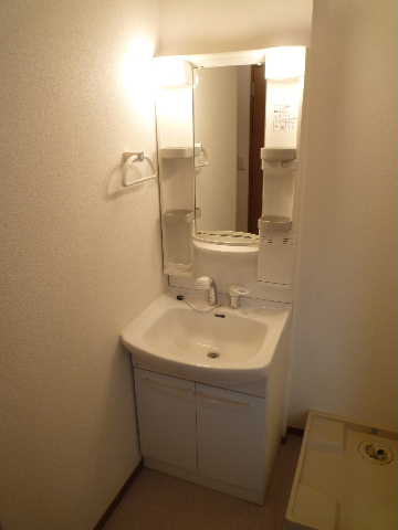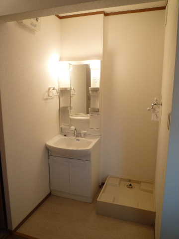 ピッカピカのシャンプードレッサーに室内洗濯機置き場。