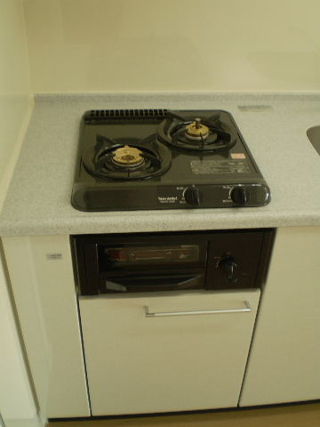 キッチンはガスの2口グリル付きでお料理も自在です。