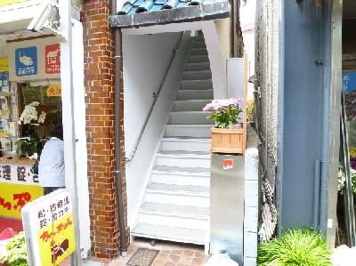 到着です。ありがとうございます。 こちらの階段を上がった2階です