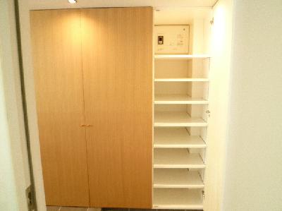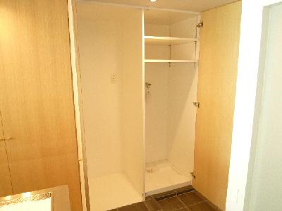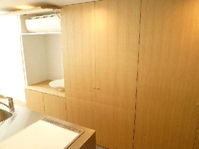 こちらは玄関を入り、キッチンの横にある収納です。ここに洗面スペースがあるのです。なぜここに?と思いますが