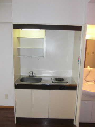 キッチンは、ミニキッチンで多少狭めですが、電気コンロで火を使わないので