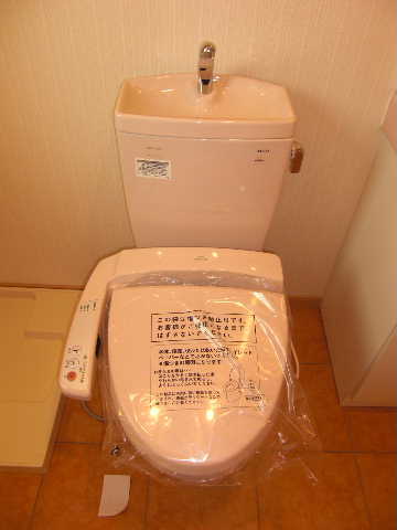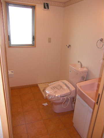 ウォシュレット付きのトイレとこちらも床はテラコッタです