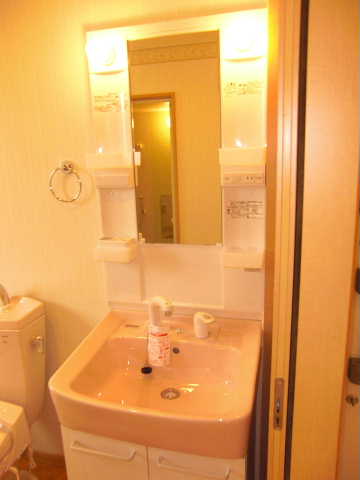 洗面器は鏡も大きくてサイドにも収納ありです!