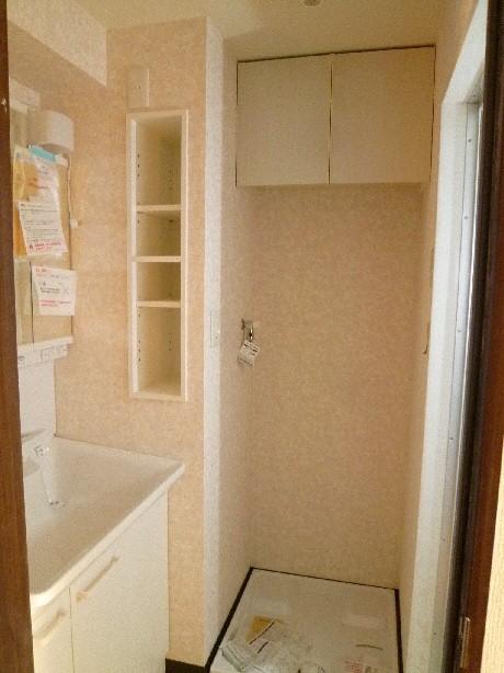 洗濯機置場は洗面脱衣所の奥まった部分を使用しているのでスッキリ置けてスペースをとりません