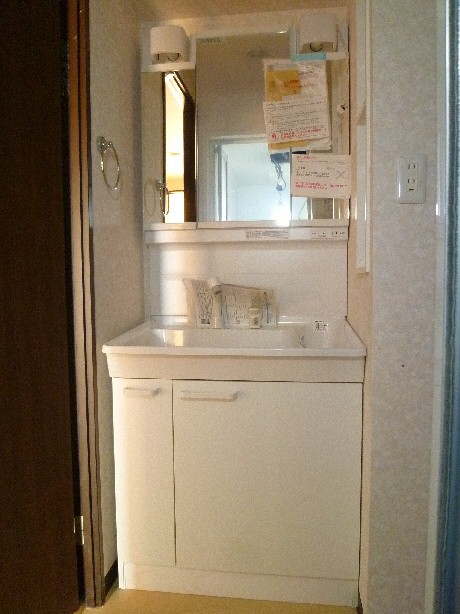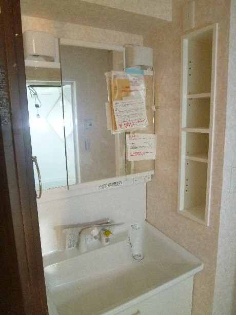 独立洗面台は嬉しい鏡が3面鏡のタイプ! 使いやすいタイプですね