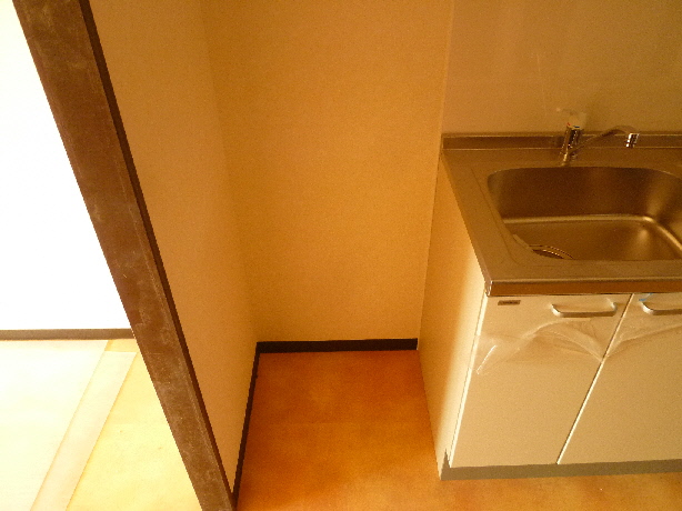 ↑ キッチン横に冷蔵庫を置いても、後ろにかなりスペースがあるので