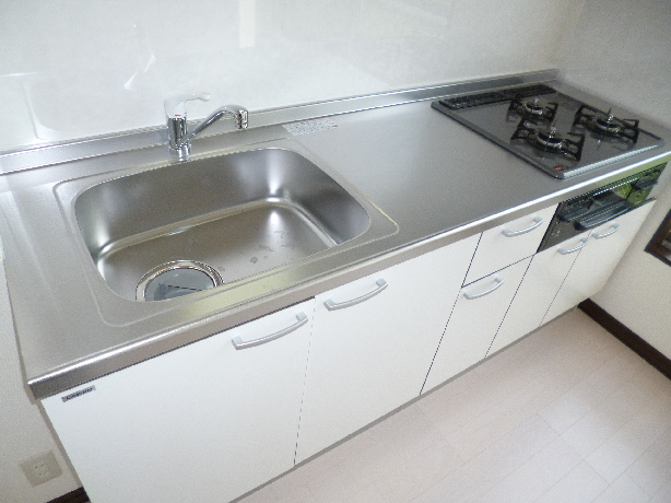 キッチンはグリル付きの三口ガスコンロシステムキッチンです
