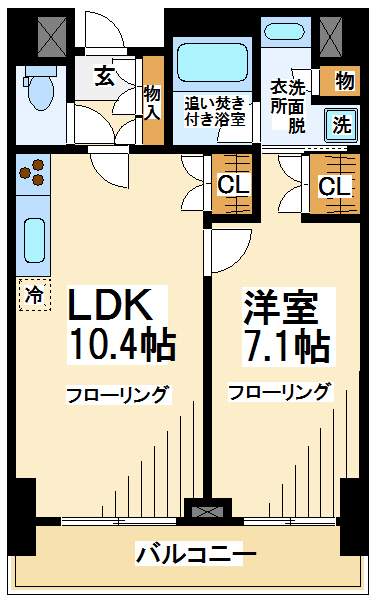 リンビング10.4帖の広さで奥行がタップリございます。また築年数が2010年築の築浅物件ですので、フローリングもピカピカ