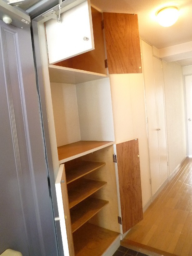 しっかりとした広さの取られた玄関ホールには上下に分かれた下駄箱があります。