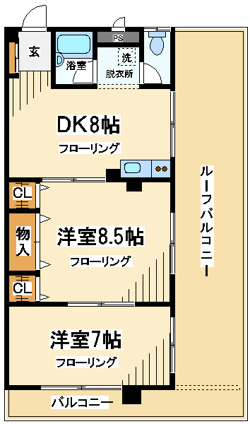 しかも最上階角部屋南向きルーフバルコニーのあるお部屋です。