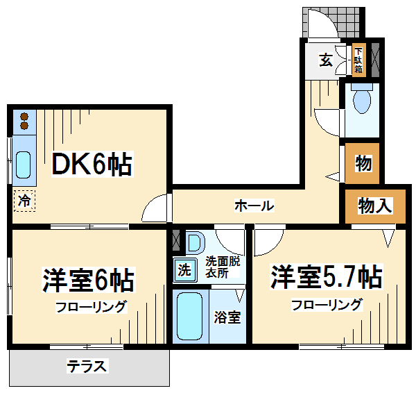 玄関から直接、お部屋が見える事無く防犯的にも安心の間取りです