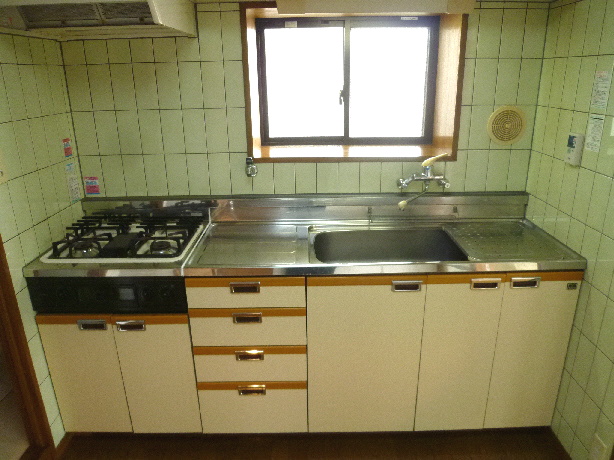 キッチンはお料理のしやすいシステムキッチンです。キッチンの前に窓があるので明るさもあり、お料理がはかどりそうです