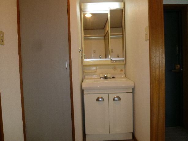 洗面所は広めで独室洗面台の横にもしっかりと収納があります。
