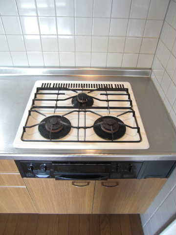 大型のシステムキッチンは、ガス3口+グリル付き&広めのシンクで使い勝手は最高です!!