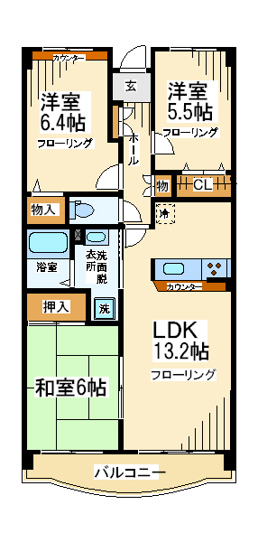 【設 備】 3口ガスコンロシステムキッチン、追い焚き、