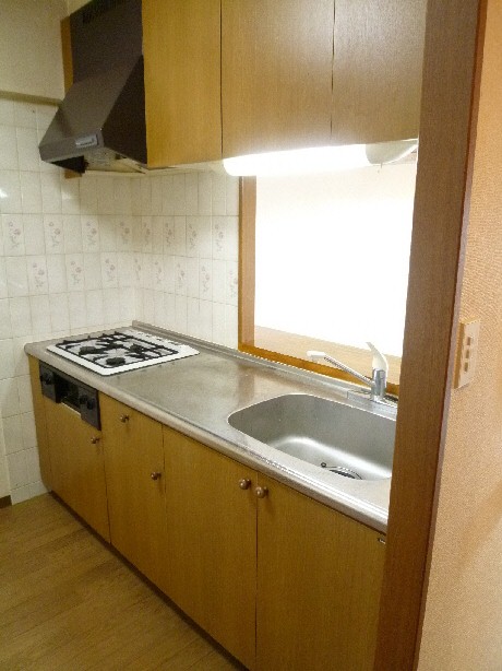 グリル付きの3口ガスコンロシステムキッチンが入っておりますので、