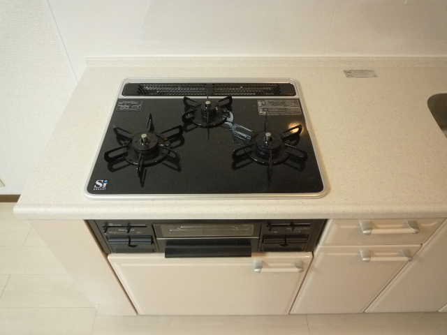 【設 備】 3口ガスコンロシステムキッチン、エアコン、