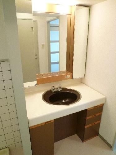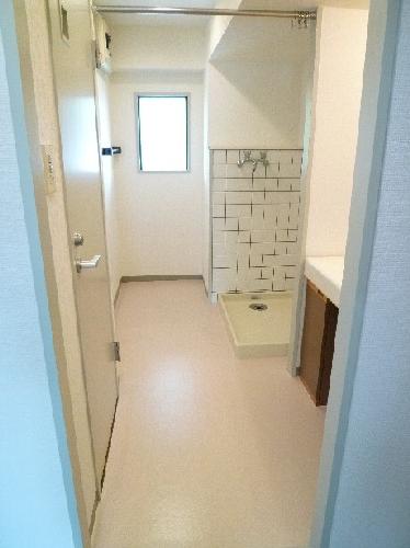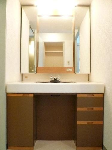 グレード感のある独立洗面台と室内洗濯機置場があります