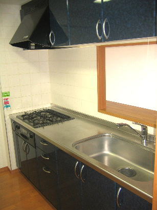 【設 備】 システムキッチン(3口ガスコンロ、グリル付き)、追焚き、