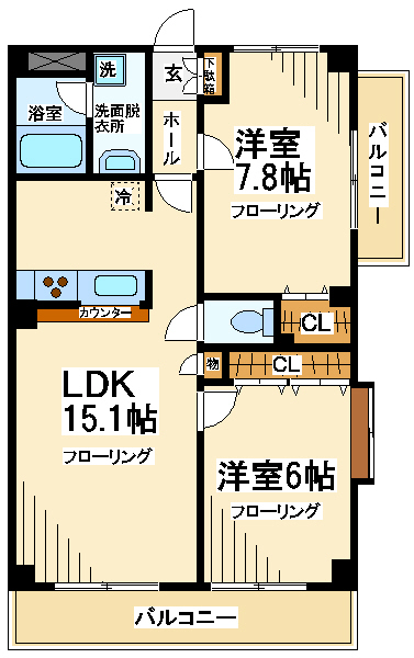 【間取り】 2LDK 59、95㎡