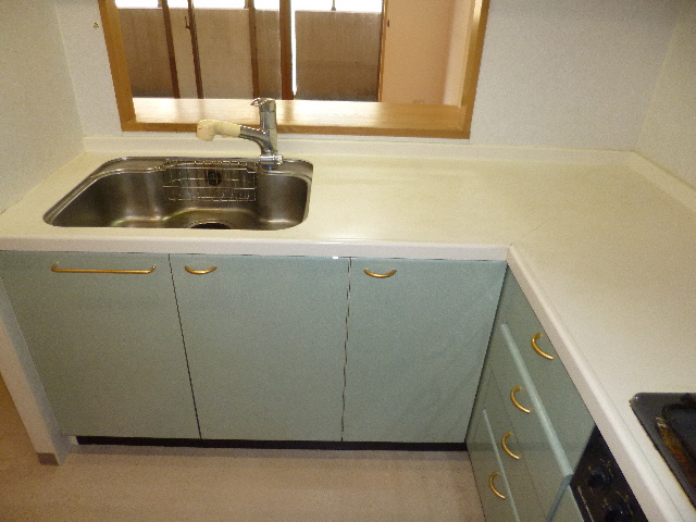 さて、キッチンですが珍しいL字型のキッチンですね