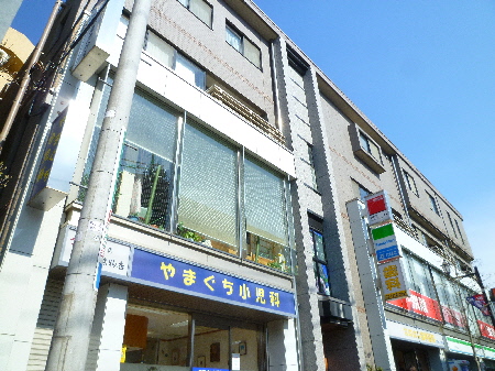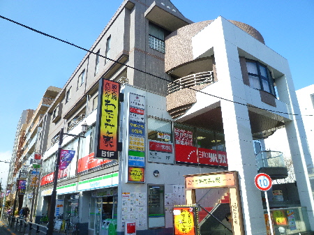きたらもうすぐです 青い看板がレントハウス仙川店です。