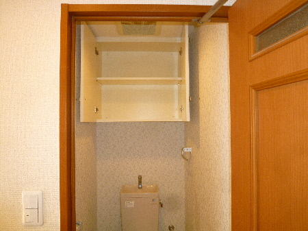 上部が収納になっています! トイレットペーパーや消臭スプレー、などなども