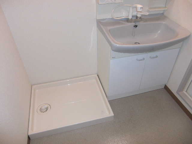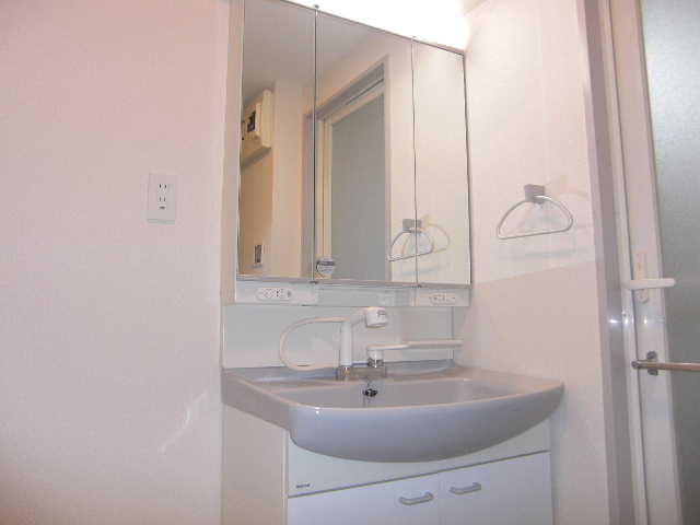 鏡の大きな独立洗面台や、室内洗濯機置き場があり、