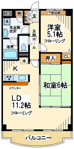 【間取り】 2LDK 57.89㎡