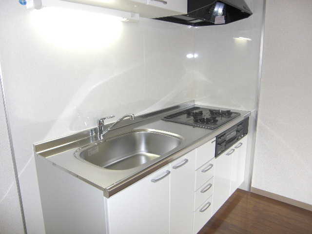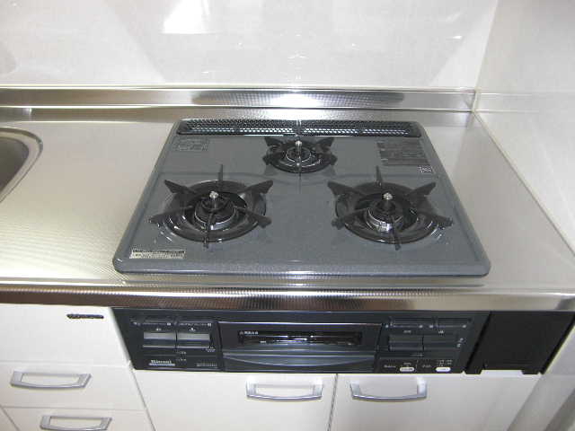 調理スペースがしっかり取られていて、3口ガスコンロ、